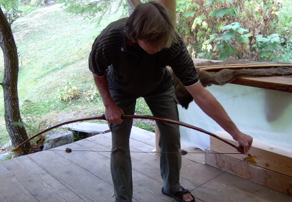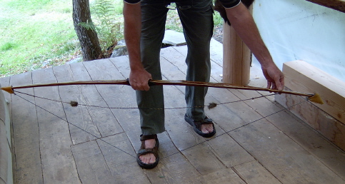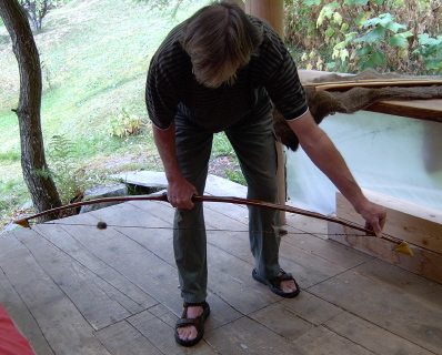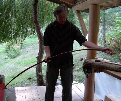 can be trusted to draw and shoot your bow just like you would.Store your bow away from heat sources and unstrung. Leaving a wooden bow strung adds unnecessary stress on your bow; never store your bow strung. Wax your bow regularly to seal the wood from the elements. Wipe it off with a cotton cloth if you're shooting in the rain or snow before you let it relax for the night. Treat your bow well and it will bring you pleasure for a lifetime. |